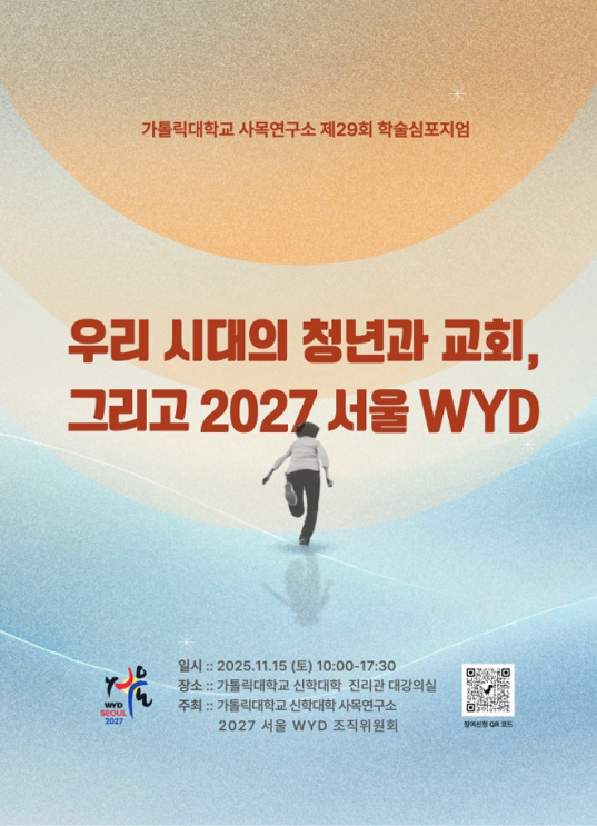 해당 조사의 연구 결과를 바탕으로, 청년들의 현실적 어려움을 분석하고 이에 귀 기울이며 교회가 나아갈 방향을 찾고자 합니다. 가톨릭대학교 사목연구소와 2027 서울 WYD 조직위원회가 함께 준비한 이 자리에 청년 여러분과 청년들을 사랑하시는 분들의 많은 관심과 참여를 청합니다.